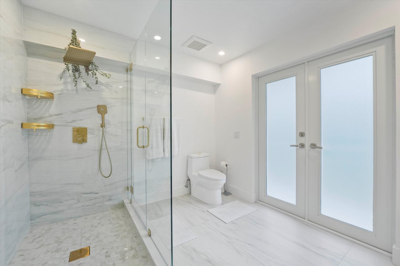 The outdoor living spaces are designed for entertaining with a new outdoor kitchen featuring a gas griddle, ice machine and chilled beverage drawers, a large "shellrock" pool deck, heated pool and jacuzzi with lighting, a firepit, and a generous parking pad for up to six vehicles in addition to a two-car garage. Inside, you'll find thoughtful details like a second-floor laundry room, open living spaces, and contemporary finishes throughout.